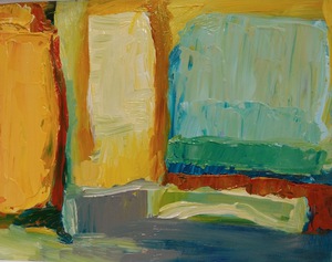 Schilderijen, acryl op doek en plaat, abstract